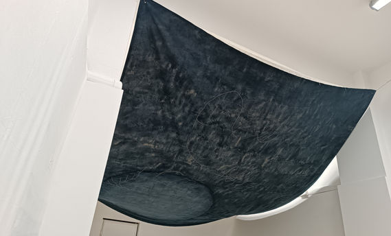 Il mantello del cielo, 2022, pigmento naturale indigo, filo da ricamo, cm 332x280